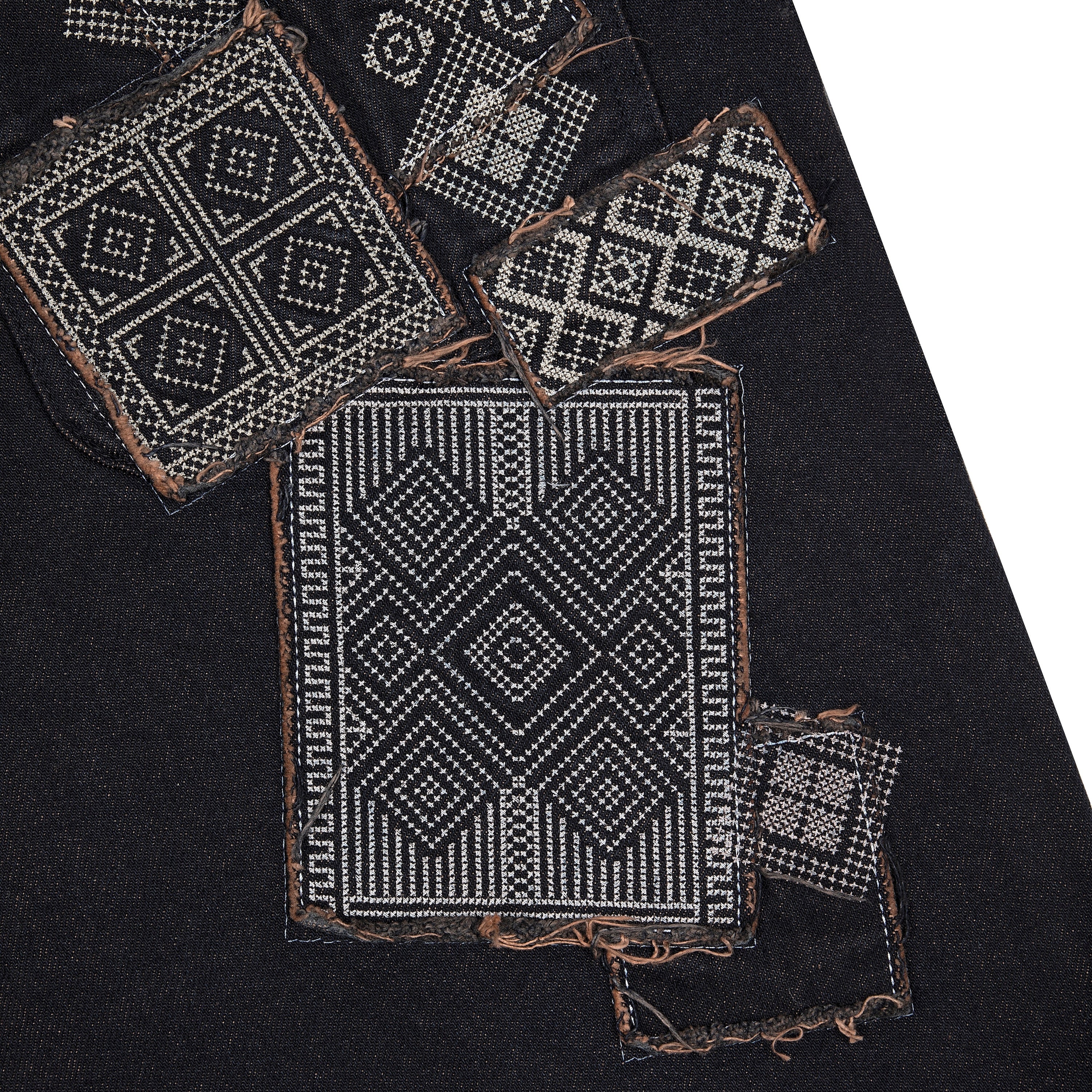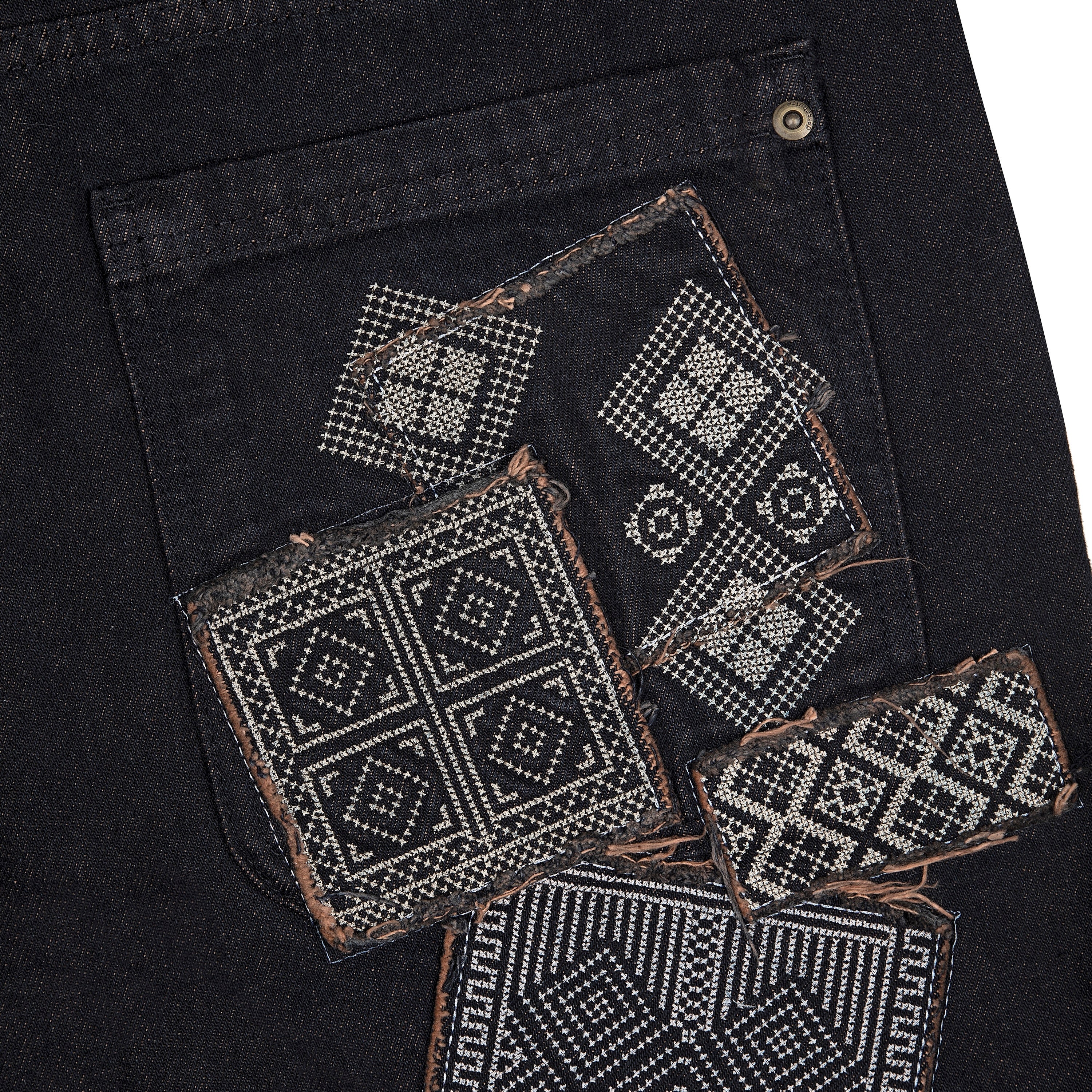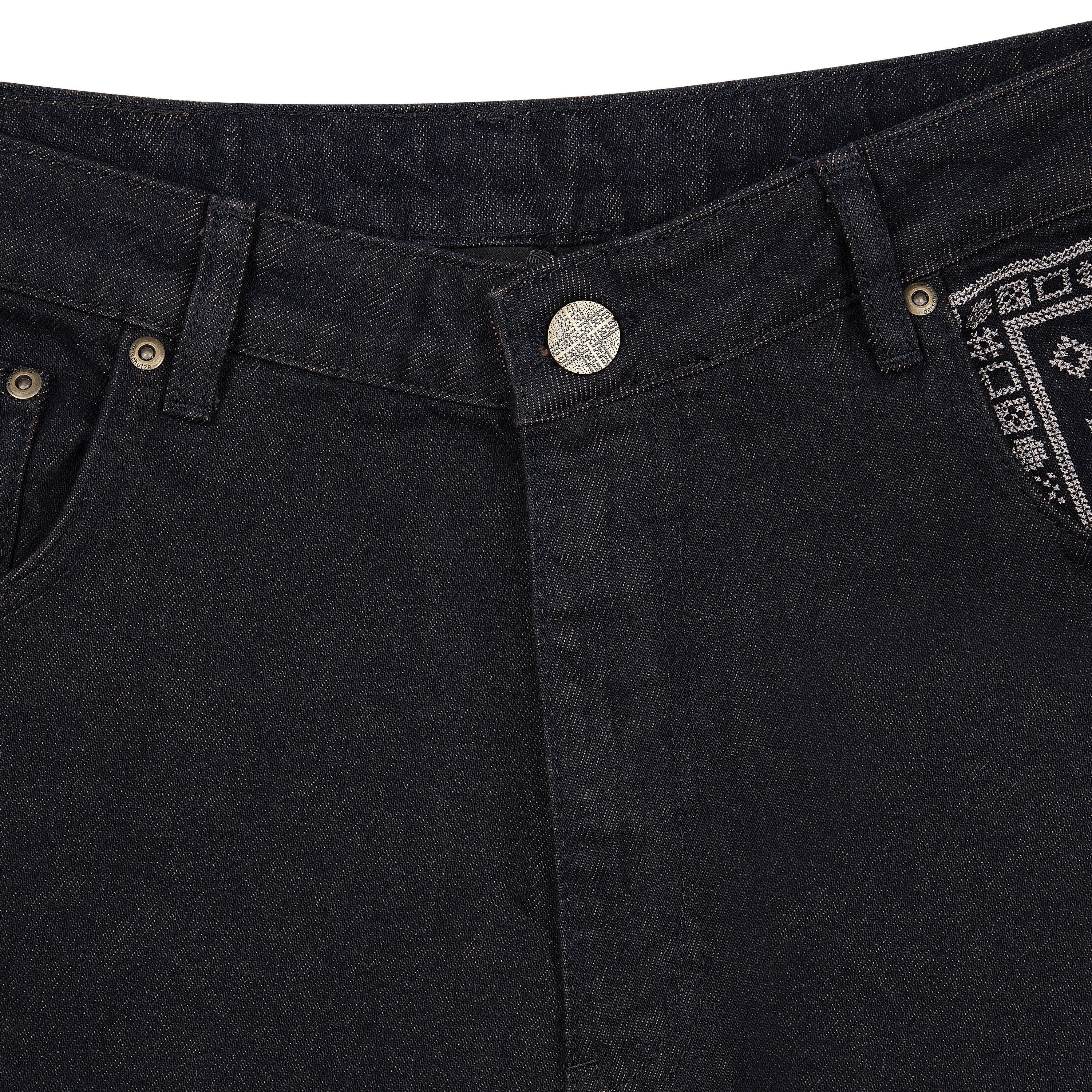 14,5oz denim / 100% cotton / embroidery on front pocket / embroidered patches on back / debossed printed leather patch / custom button / red tinted effect washing / wash inside out / fits true to size